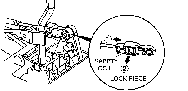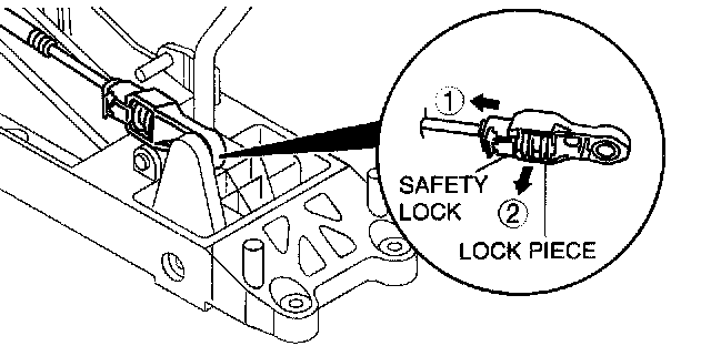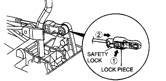 5. Lock the lock piece of the selector cable (shift cable side) in the order shown in the figure.