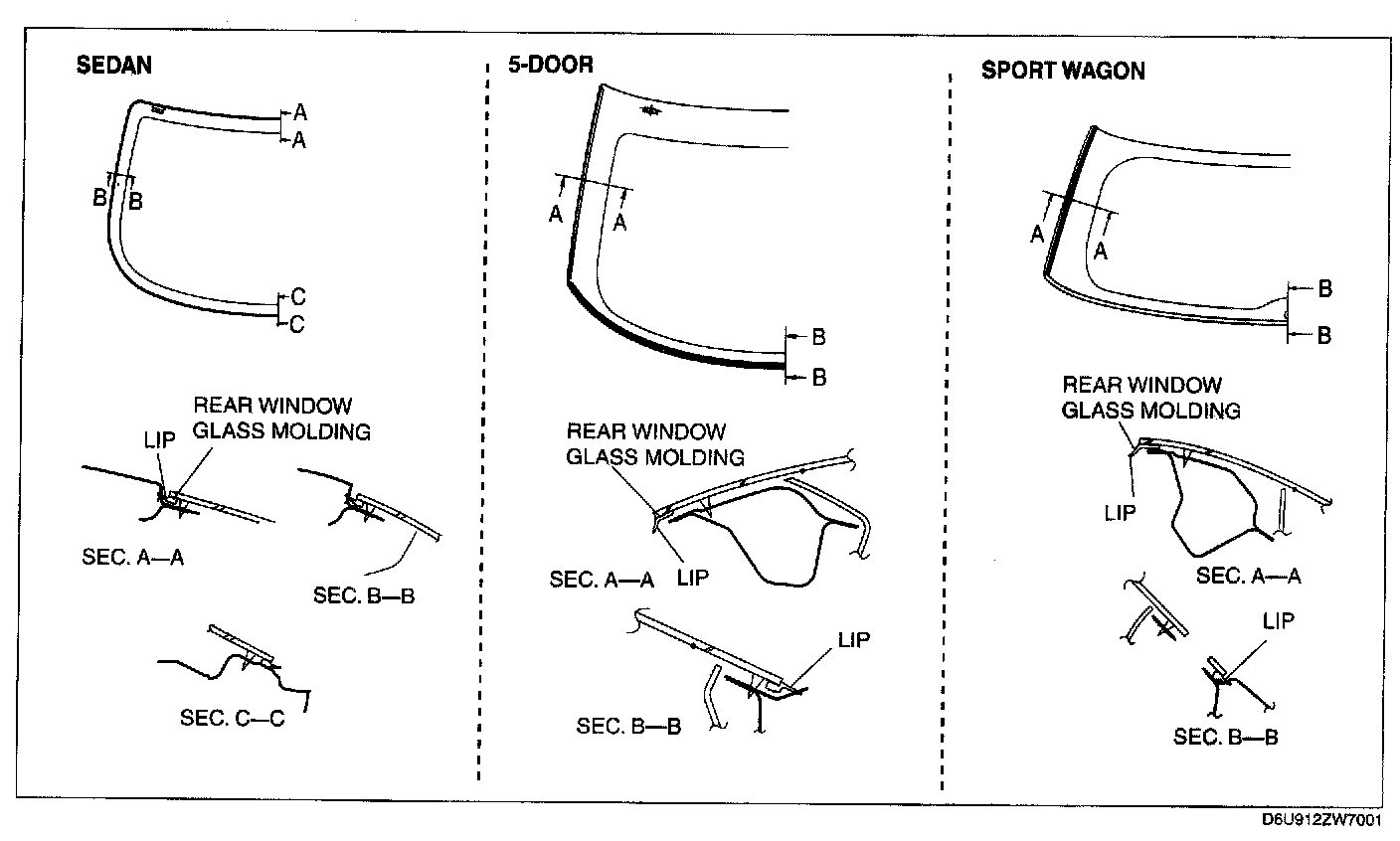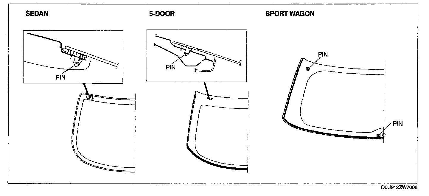 REAR WINDOW GLASS REMOVAL1. For the Sedan, remove the following parts: