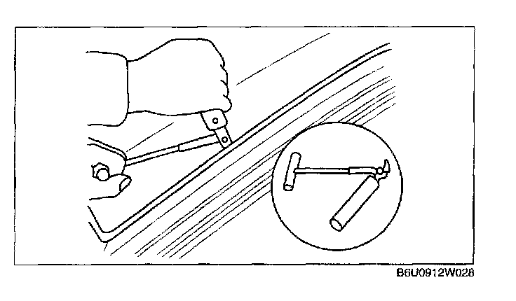 NOTE: For the areas of the sealant that are difficult to cut, use a SST (piano wire) and follow the procedure under "Reusing Rear Window Glass."