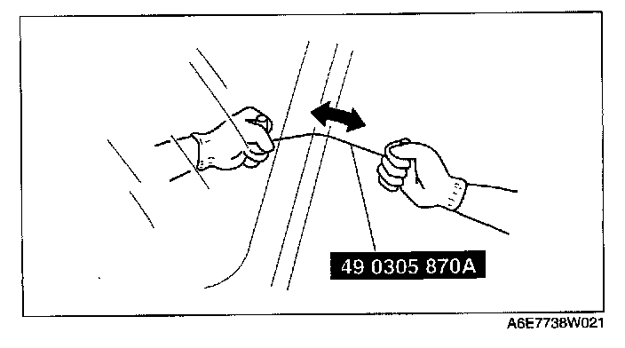 4. Fix one end of the SST (piano wire), and while pulling the other end, cut the sealant around the rear window glass.