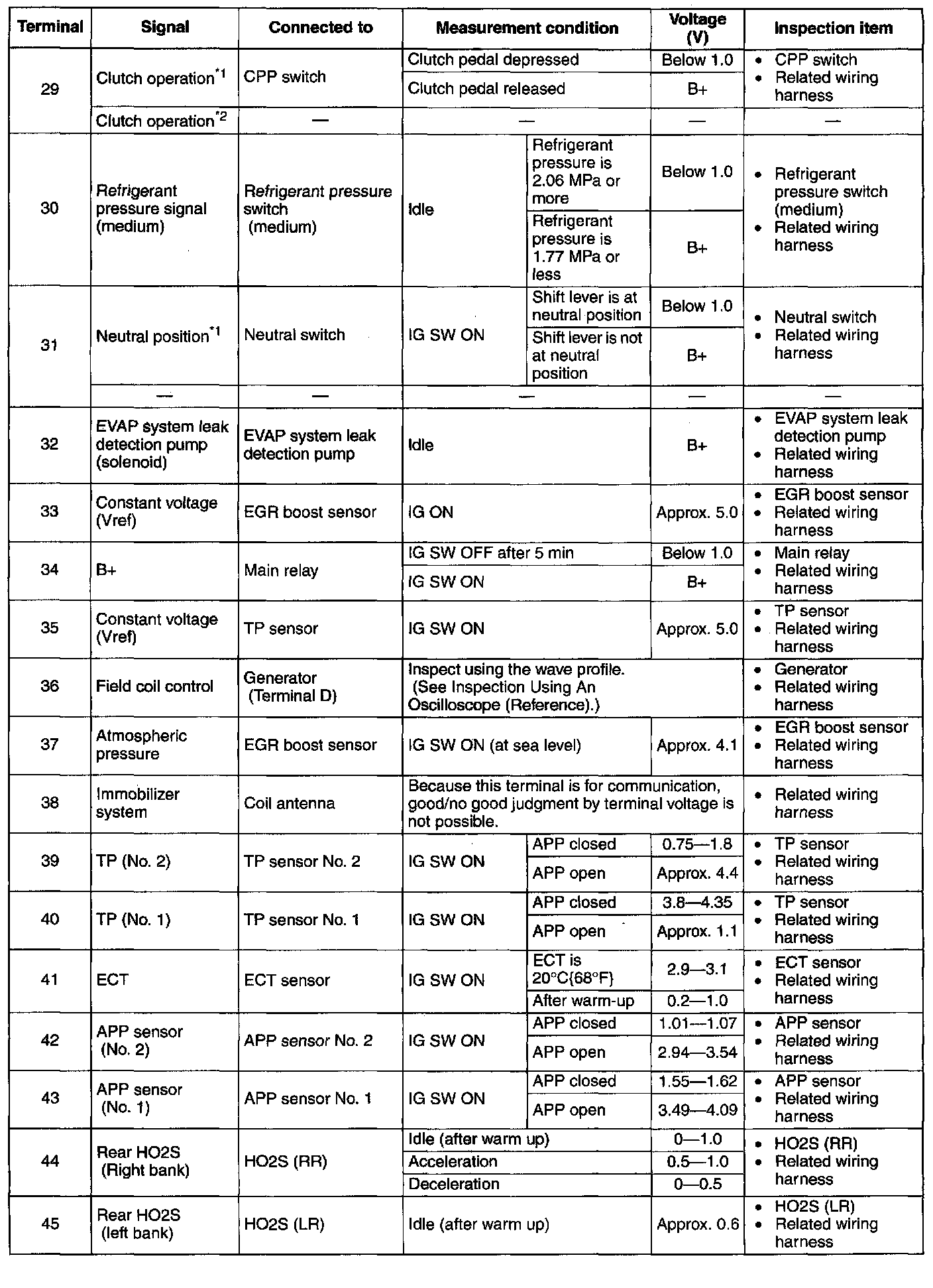 Terminal Voltage Table (Reference) - Terminals (29 - 45):