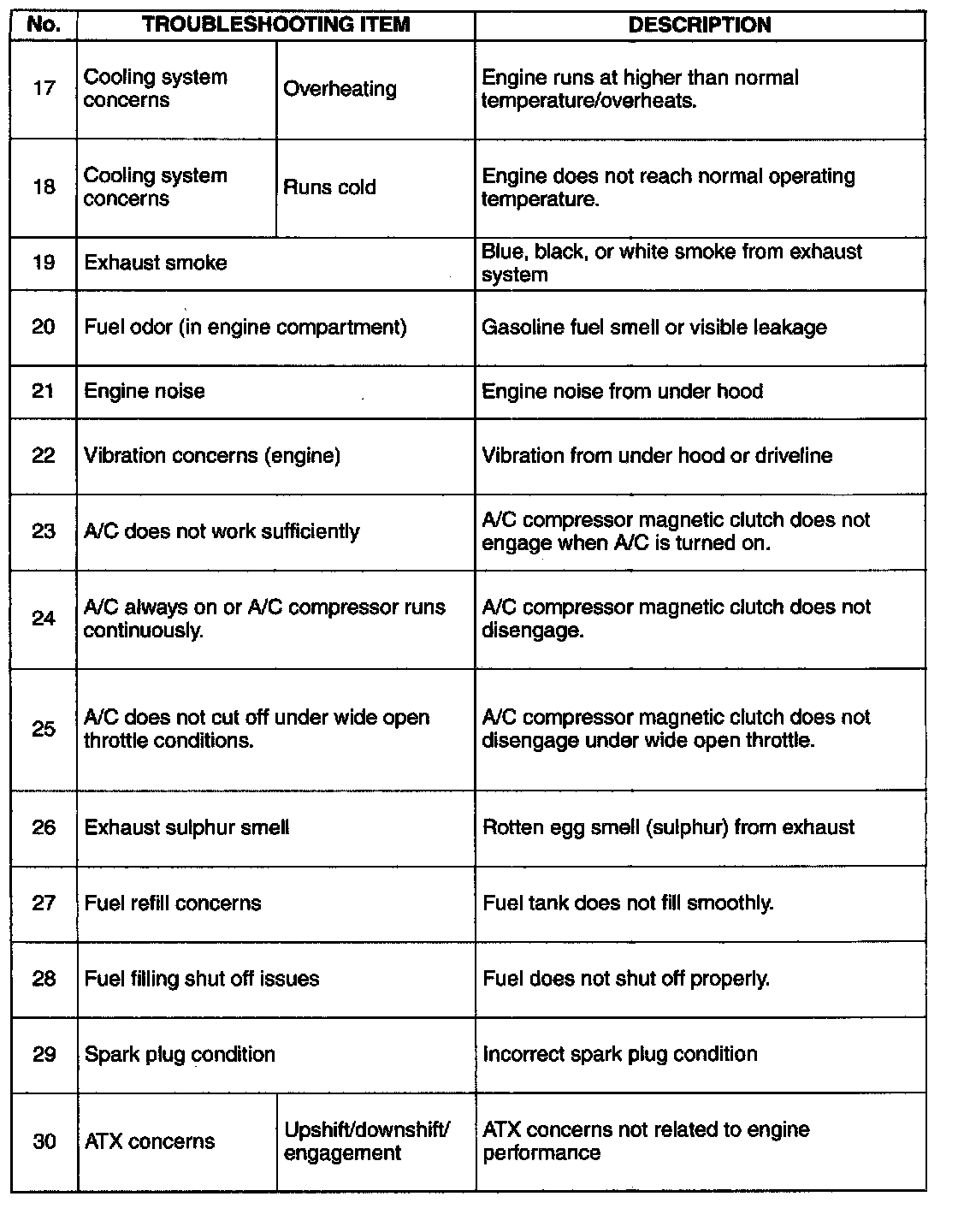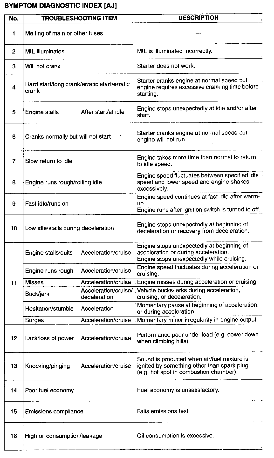 Symptom Troubleshooting Chart - Engine Driveability