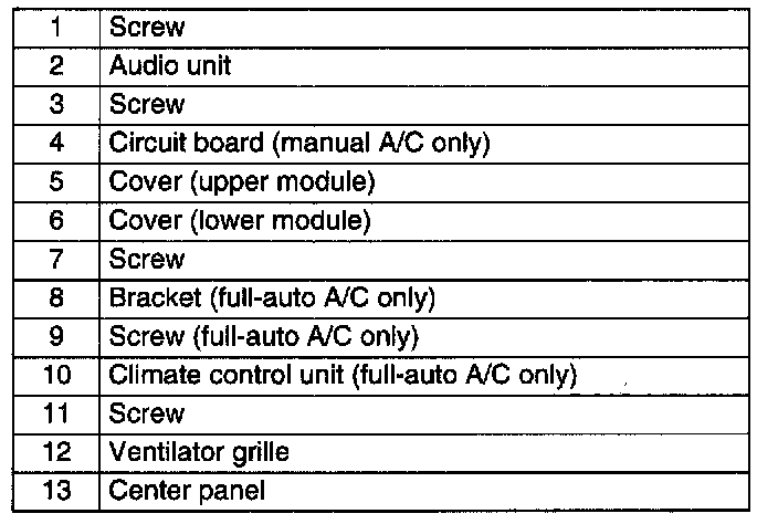 CENTER PANEL MODULE DISASSEMBLY/ASSEMBLY