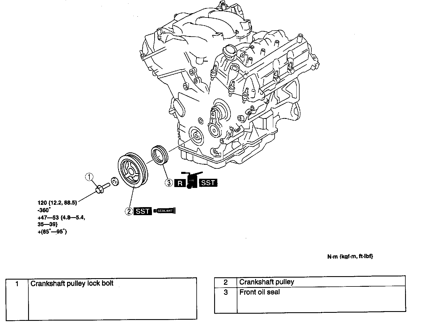 1. Tighten 120 Nm (12.2 kgf-cm, 88.5 ft. lbs.)