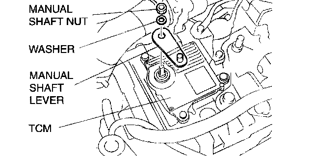 ^ Do not use an impact wrench. Hold the manual shaft lever when removing the manual shaft nut, or the transaxle may be damaged.