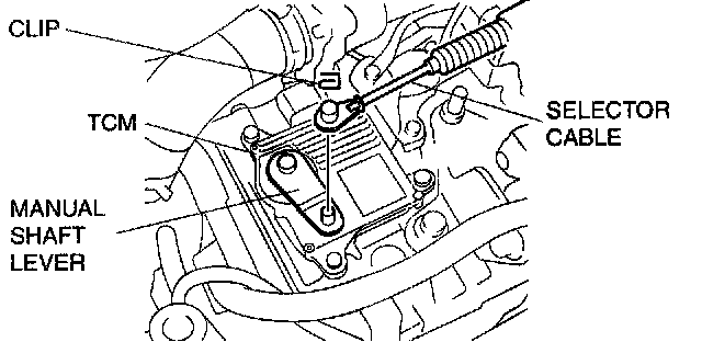 4. Remove the clip and disconnect the selector cable.