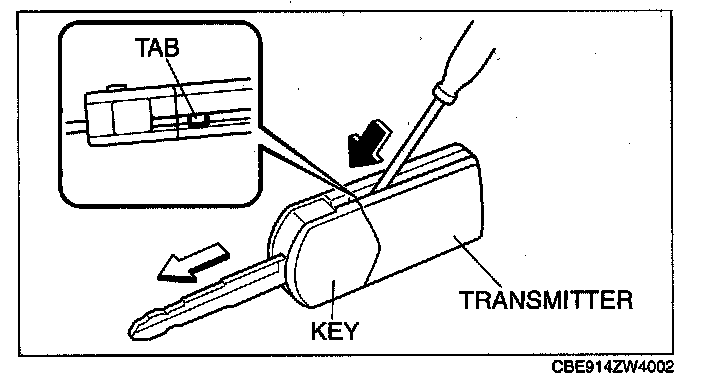 1. Insert a small screwdriver into the slot and push the tab to remove the key from the transmitter.