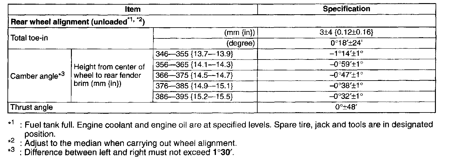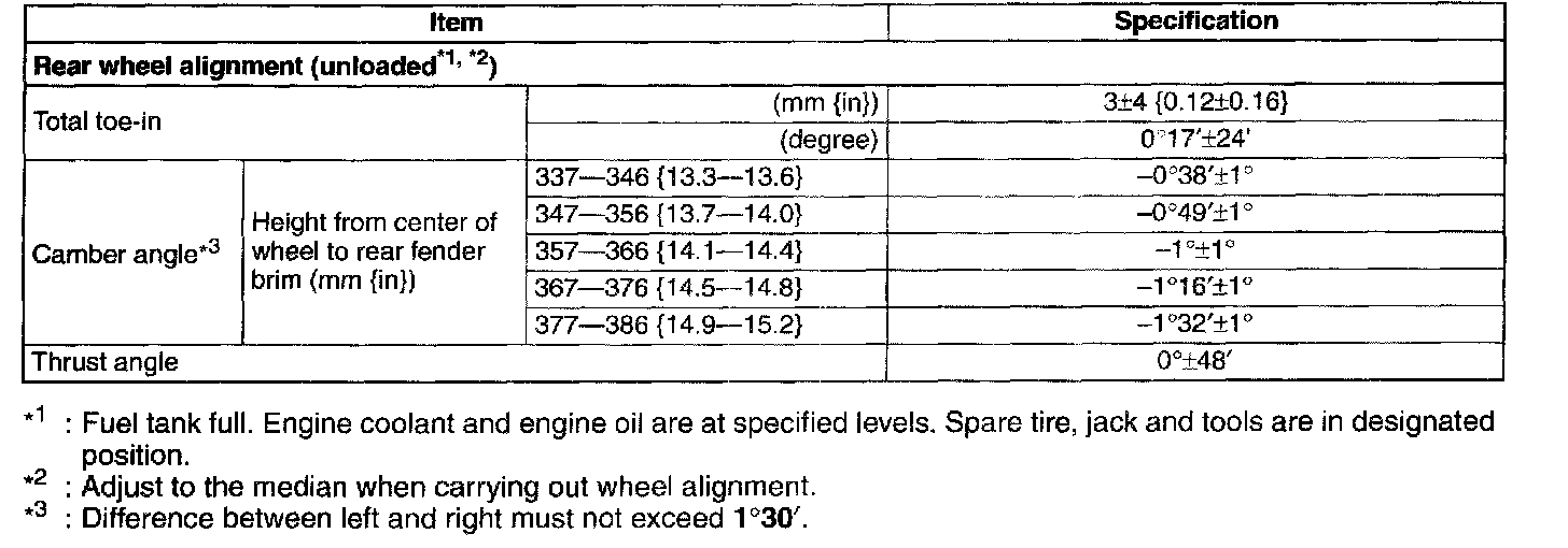 REAR WHEEL ALIGNMENTSpecification