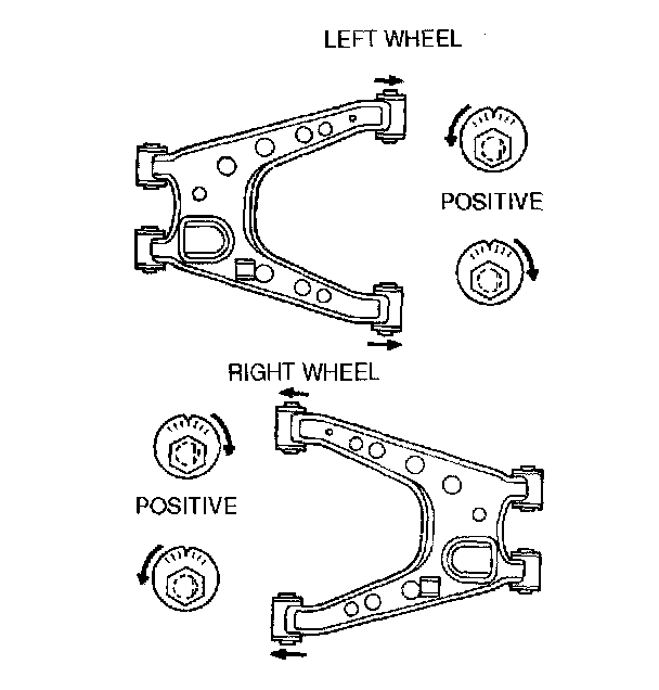 2. Turn the front and rear adjusting cam bolts the same amount in the opposite direction equally to provide the correct camber angle.