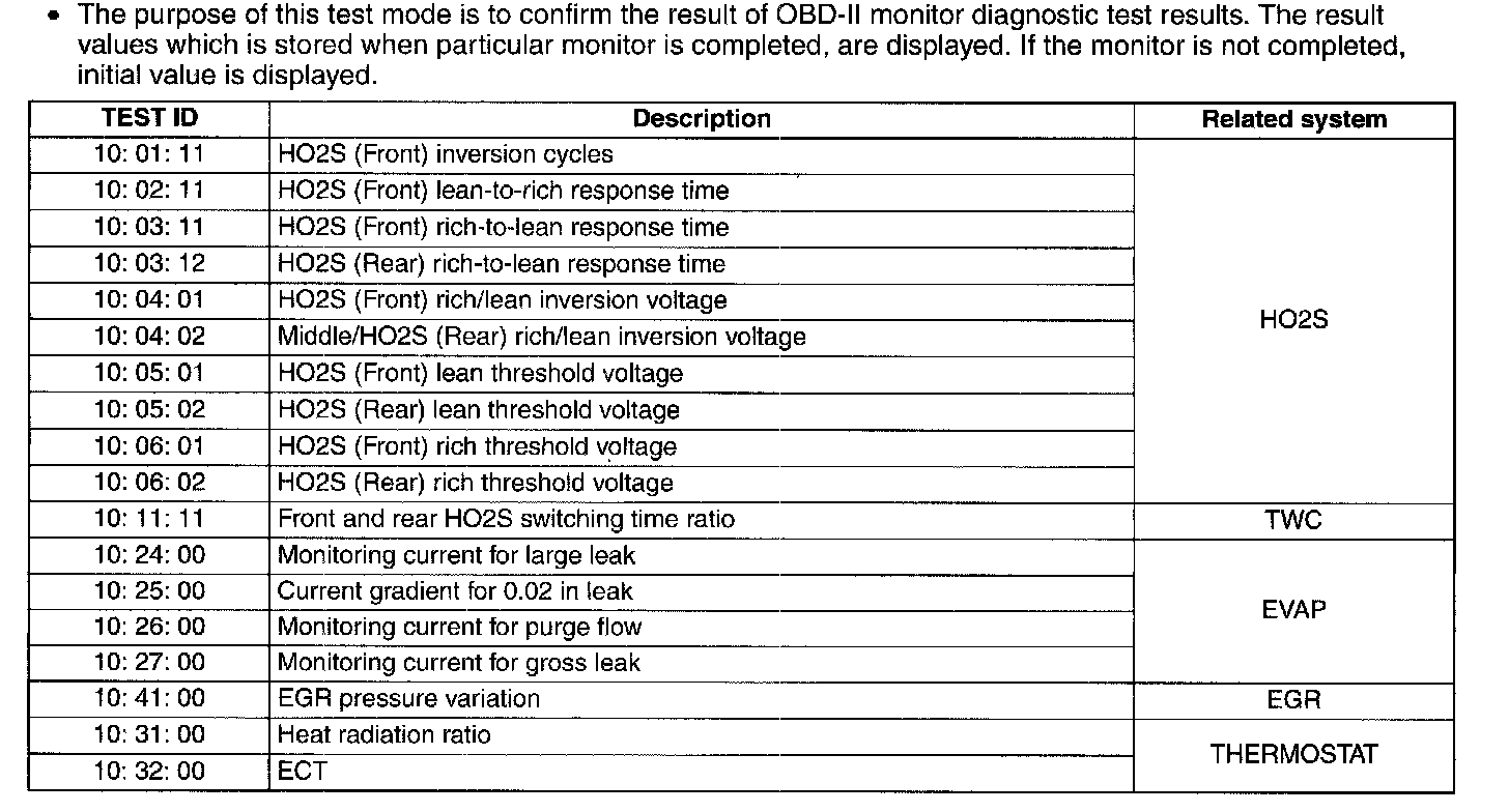 Diagnostic Monitoring Test Results