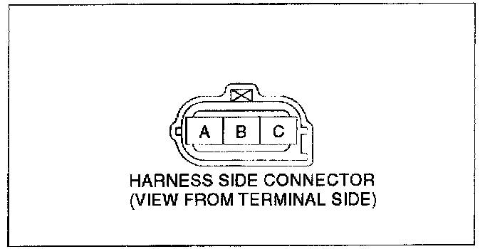 3. Verify there is no continuity between the TP sensor connector (vehicle side) terminal A and battery positive harness using an ohmmeter.