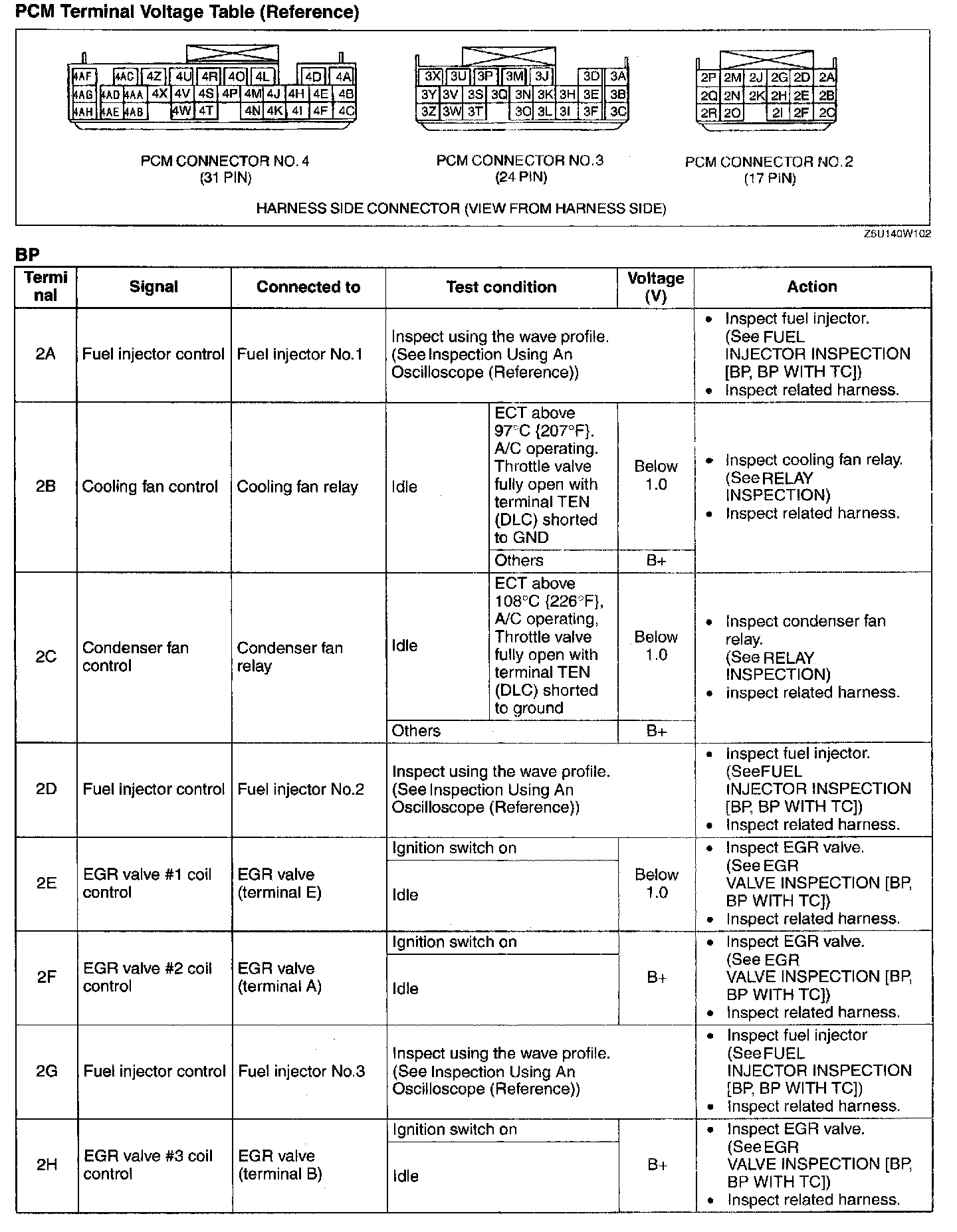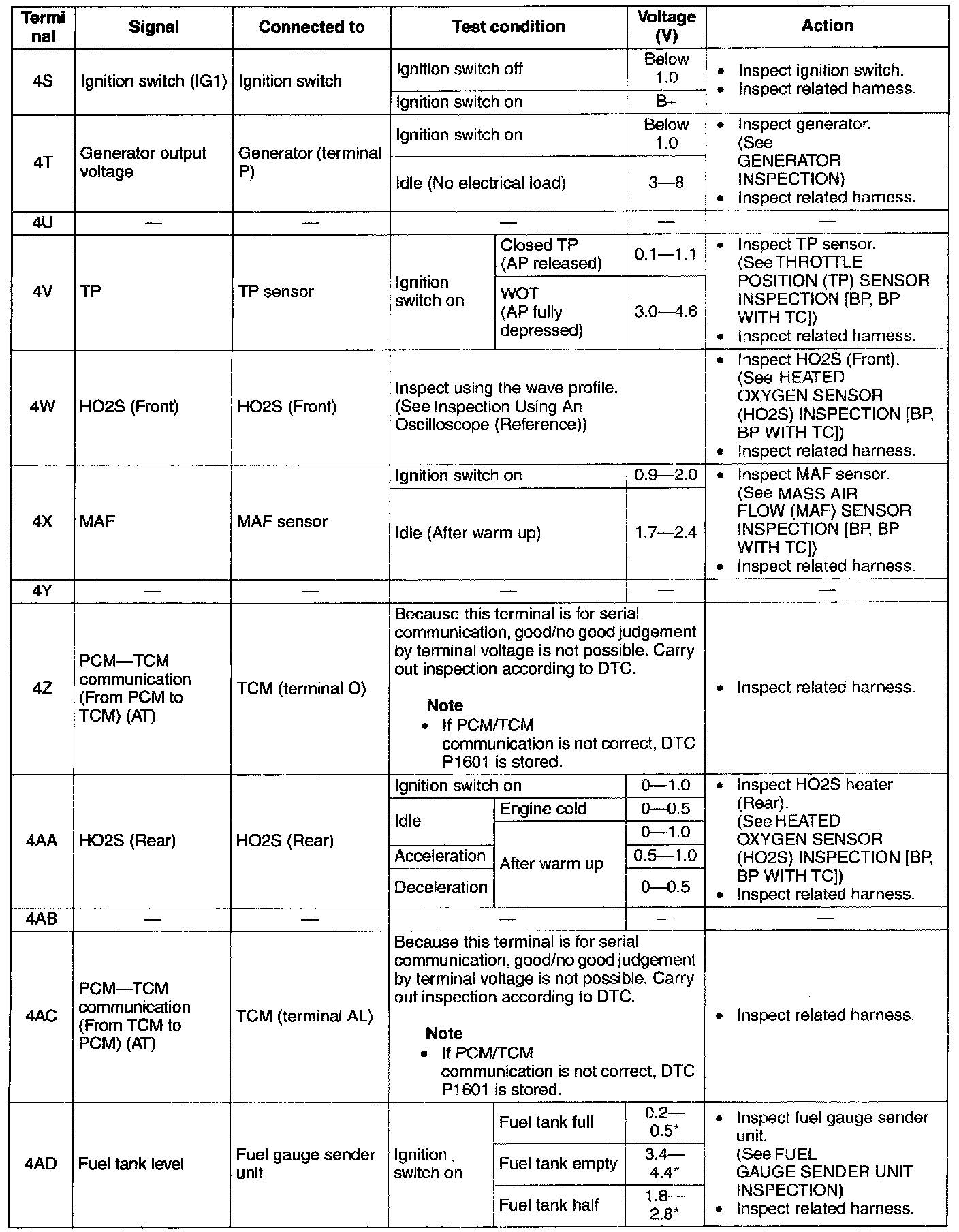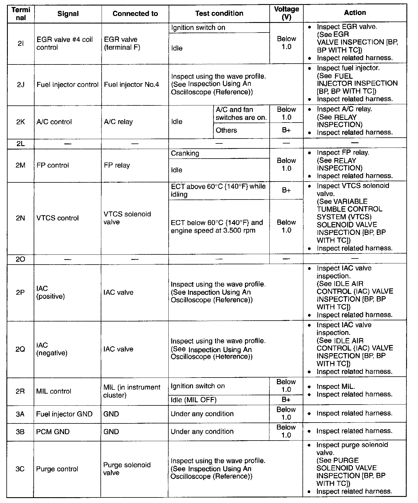 PCM Terminal Voltage Table (Reference) - (2A - 2H):