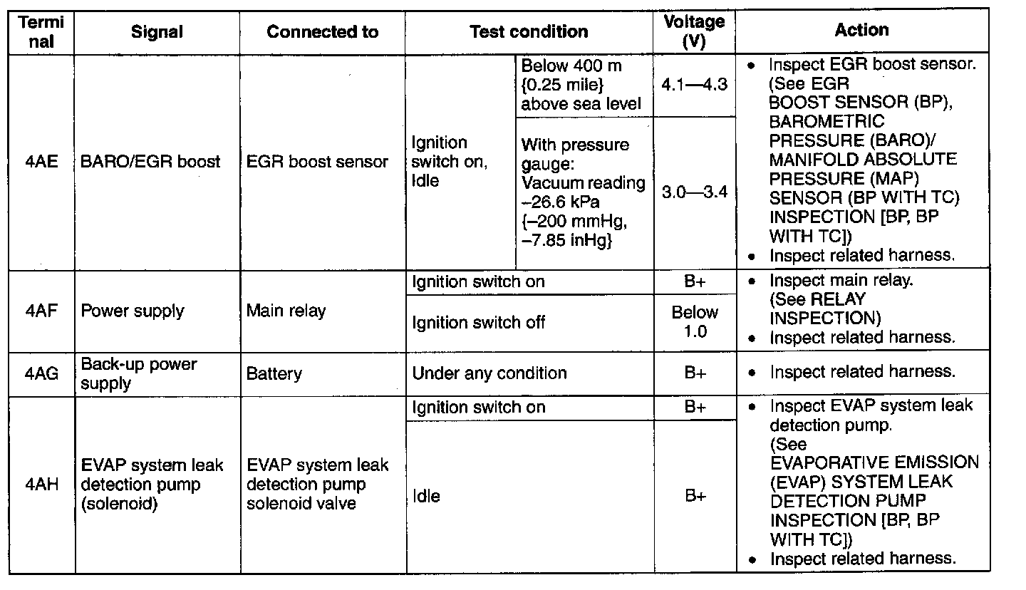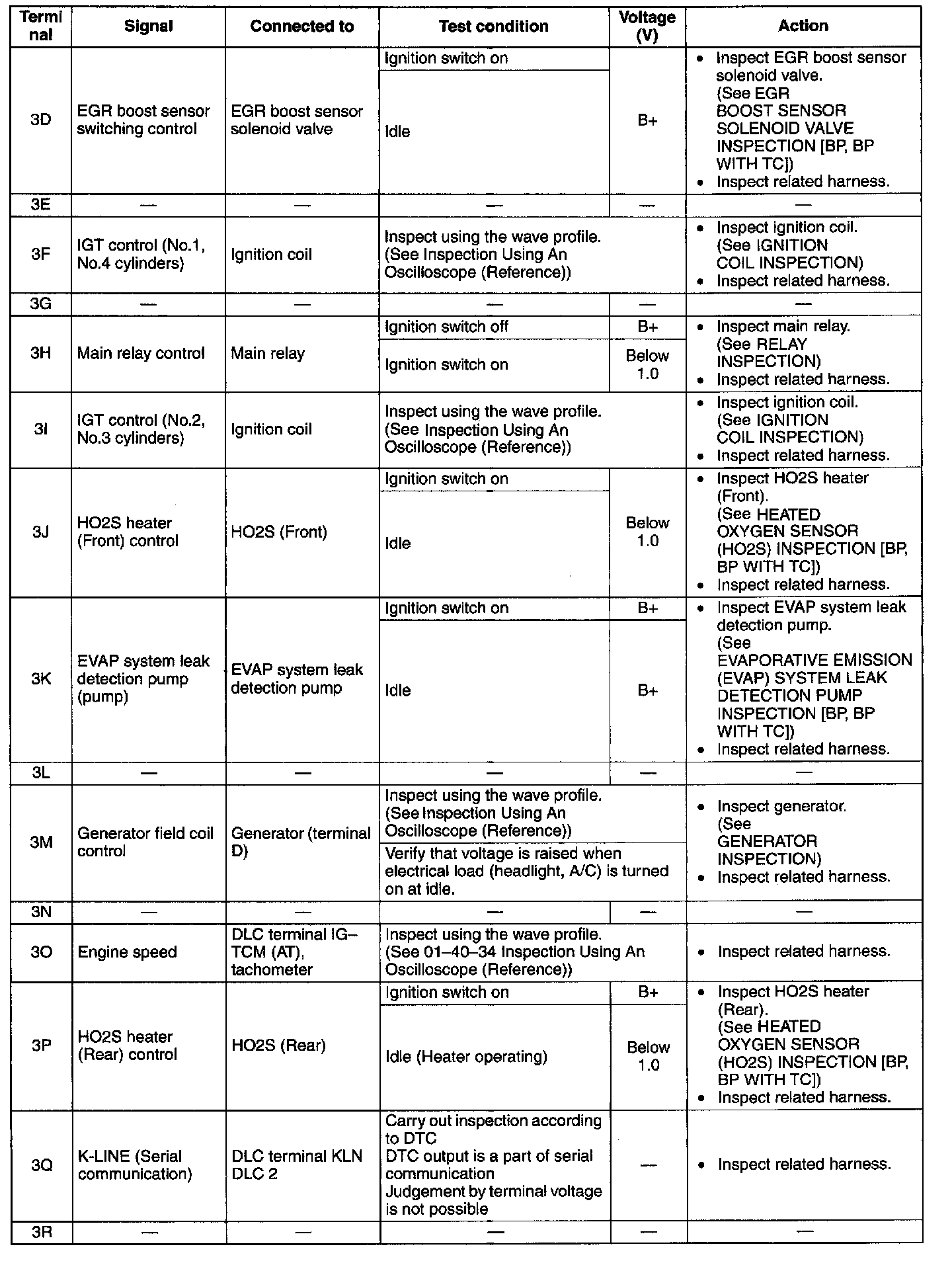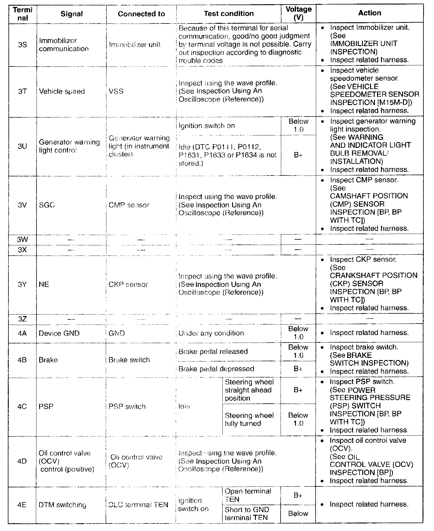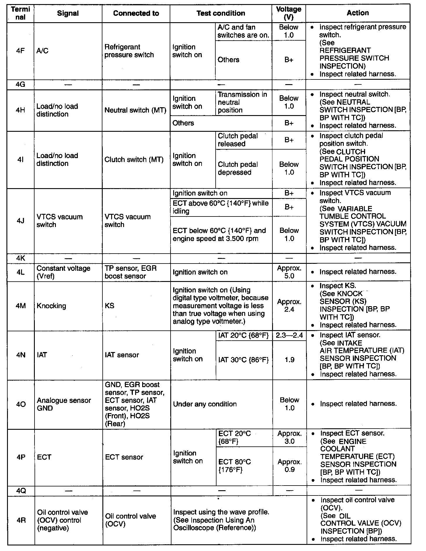 PCM Terminal Voltage Table (Reference) - (2A - 2H):