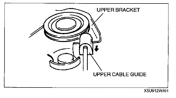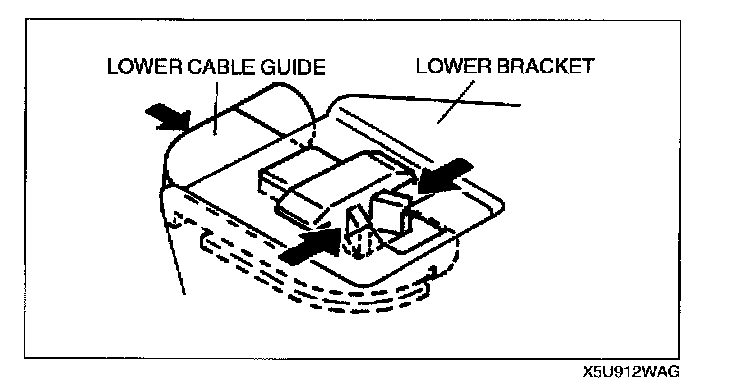 6. Verify that the ends of the cables are inserted into the adjusting bolts, shift the lower cable guide until a clicking sound is heard, and assemble to the lower bracket.