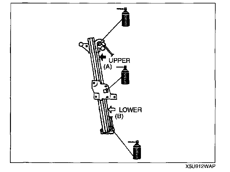 1. Remove the front glass guide. (See DOOR GLASS AND GUIDE REMOVAL/INSTALLATION.)