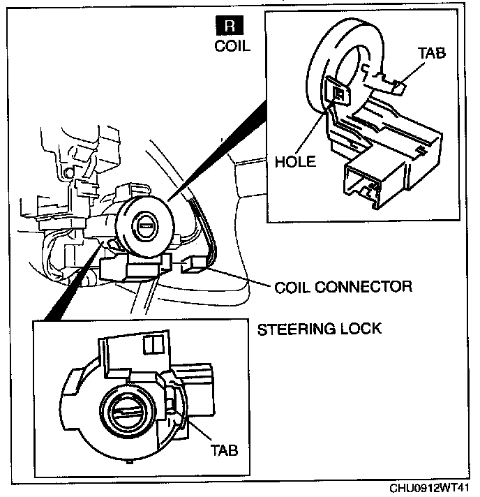4. Detach the steering lock tab from hole on the coil.
