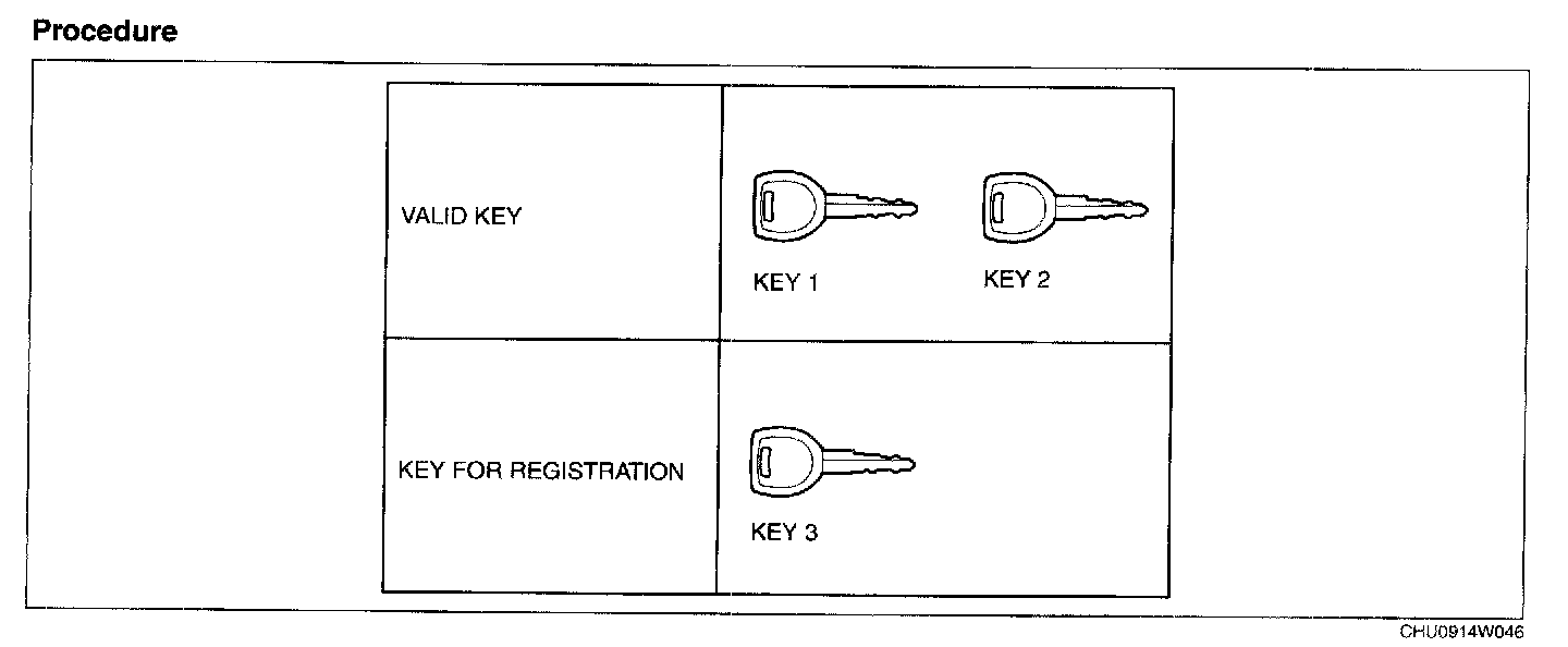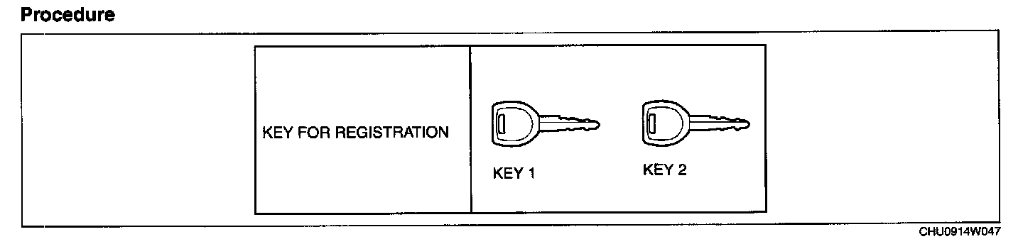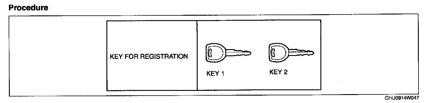 1. Using any key, turn the ignition switch to the ON position. (Either a valid or an unregistered key can be used.)