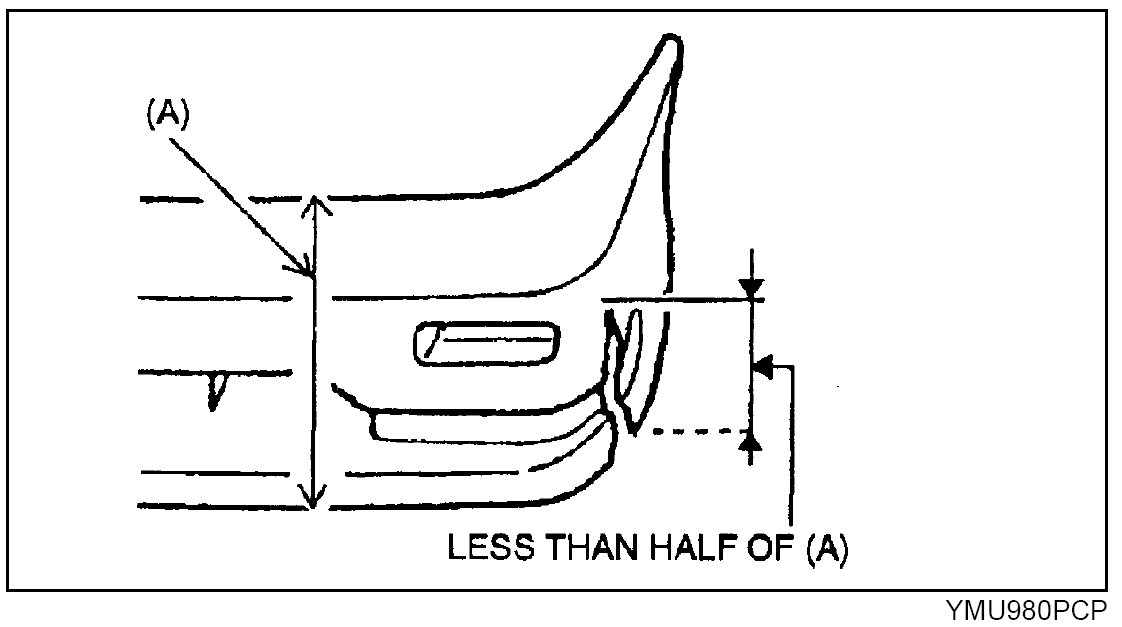 The three types of damaged bumpers shown below are considered repairable. Although a bumper which has been damaged greater than this could also be repaired, it should be replaced with a new one because such repair would detract from the looks and quality of the bumper. In addition, such repair is not considered reasonable in terms of work time.
