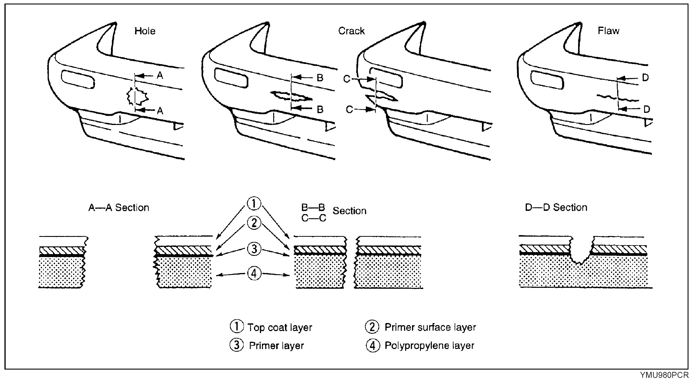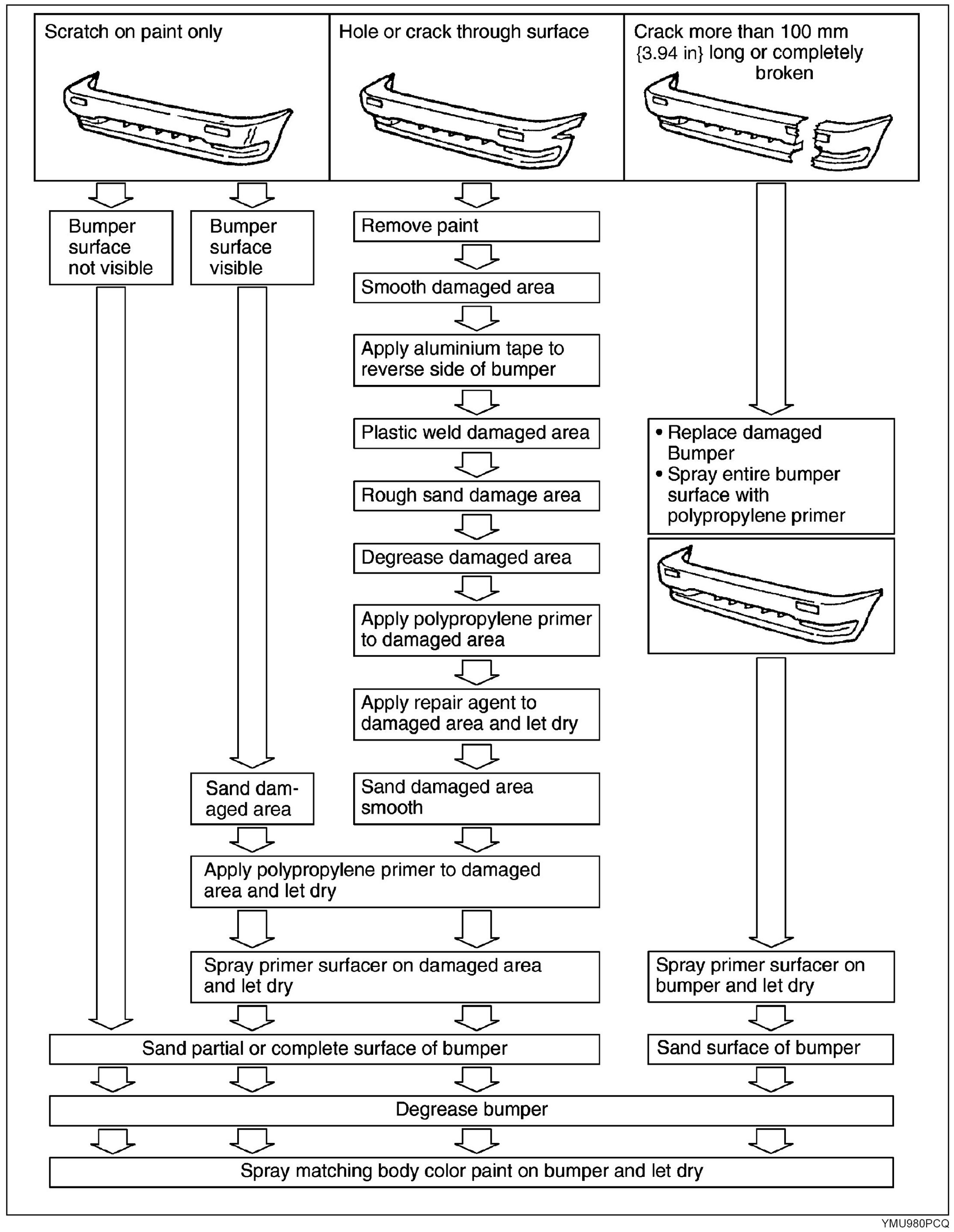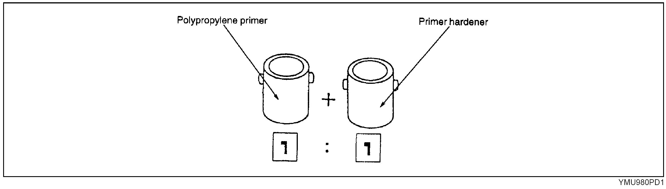 NOTE: Be sure to use only urethane primer for a urethane bumper and polypropylene primer for a polypropylene bumper. Other paints for repairing a polypropylene bumper are the same as those for the urethane bumper.