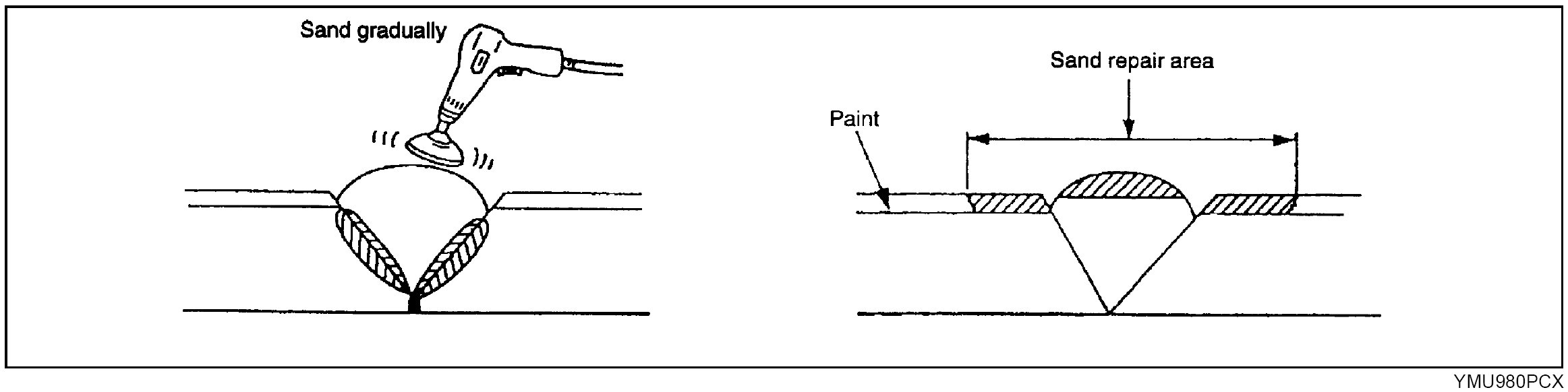 - If excessive force is applied to the area when sanding, the surface will be damaged.