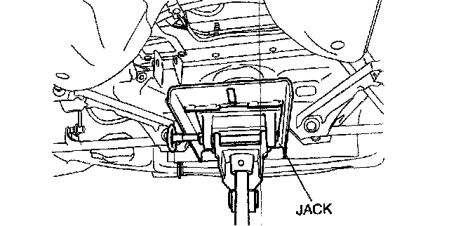 ^ Be sure that the crossmember component is securely supported by the jack. If not securely supported, the crossmember component could fall, resulting in serious injury or death, and damage to the vehicle.
