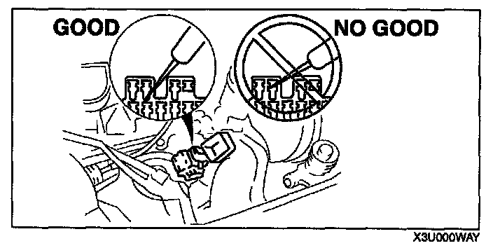 CAUTION: To prevent damage to the terminal, wrap a thin wire around the tester probe before inserting into terminal.