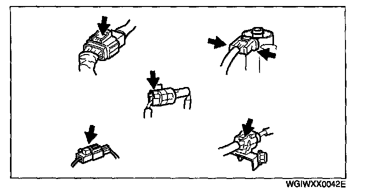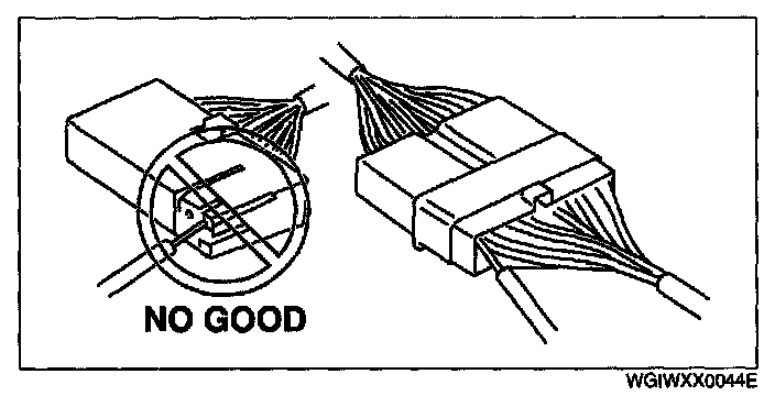 - Inspect the terminals of waterproof connectors from the connector side since they cannot be accessed from the wiring harness side.