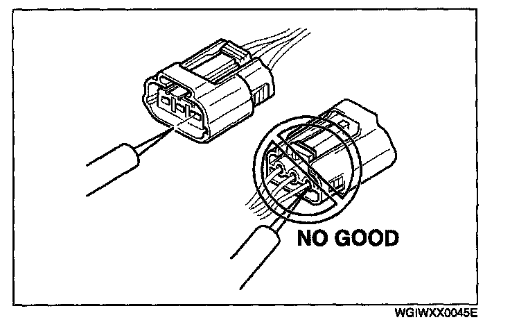 - When a tester is used to inspect for continuity or measuring voltage, insert the tester probe from the wiring harness side.