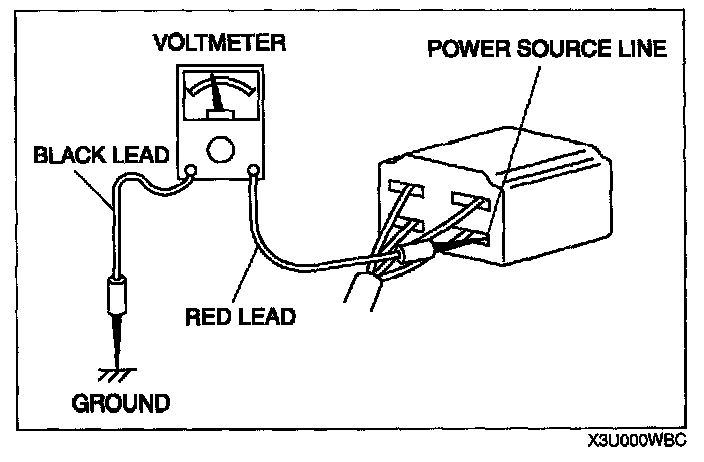 CAUTION: Do not connect a jumper wire from the power source line to a body ground. This may cause burning or other damage to wiring harnesses or electronic components.