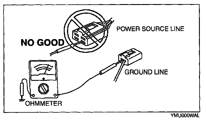 CAUTION: Do not connect the ohmmeter to any circuit where voltage is applied. This will damage the ohmmeter.