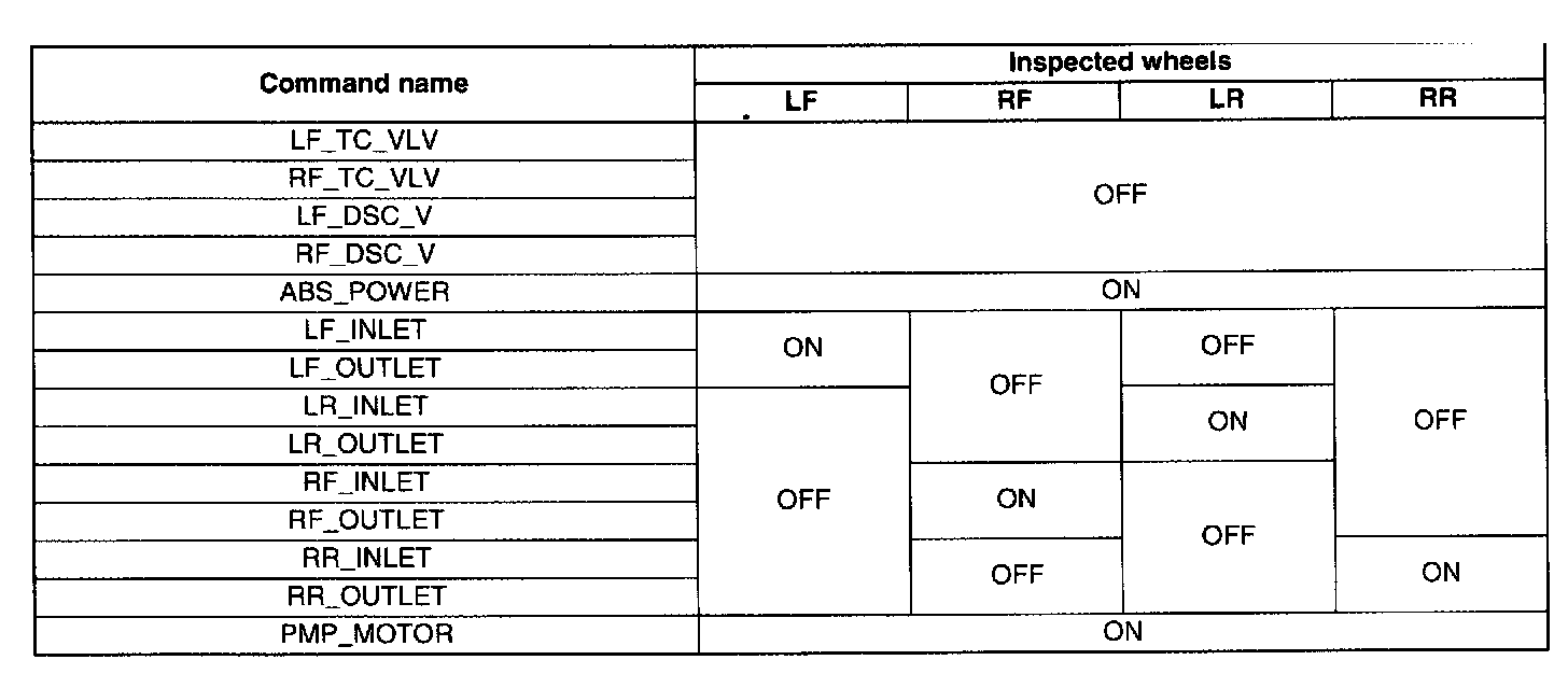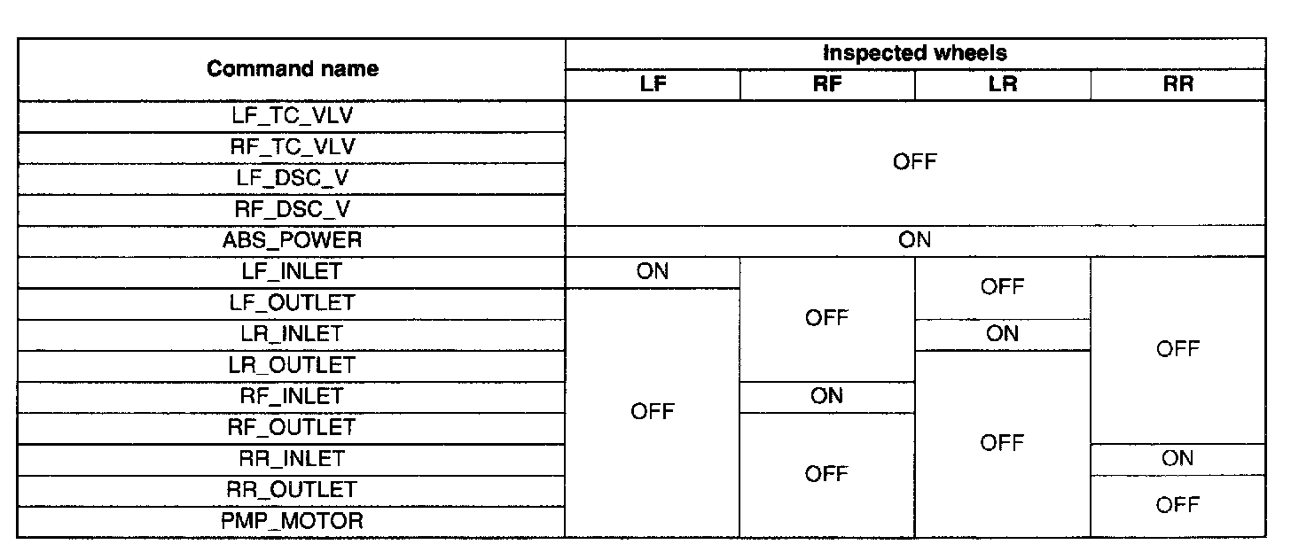 4. Send the command while depressing on the brake pedal and attempting to rotate the wheel being inspected.