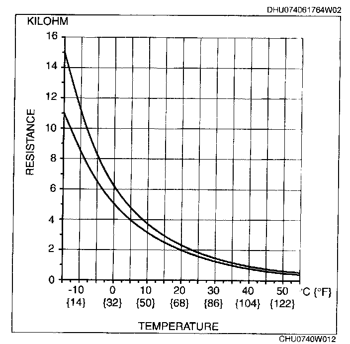 - If the characteristics of the ambient temperature sensor are not as shown in the graph, replace the ambient temperature sensor.
