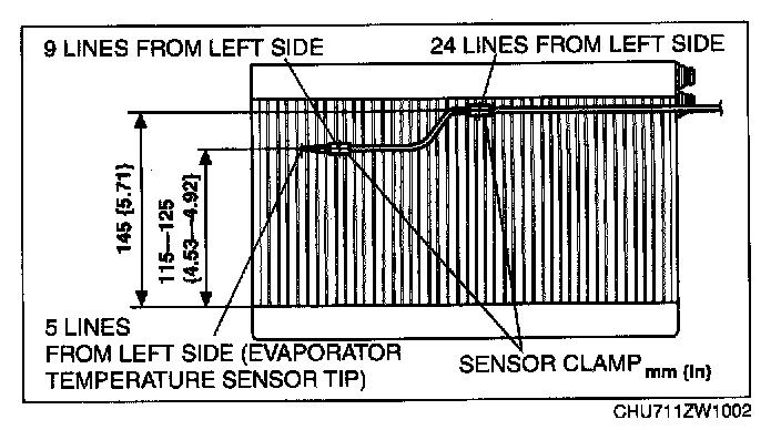 1. Install the evaporator temperature sensor by aligning it with the positions marked prior to removal.