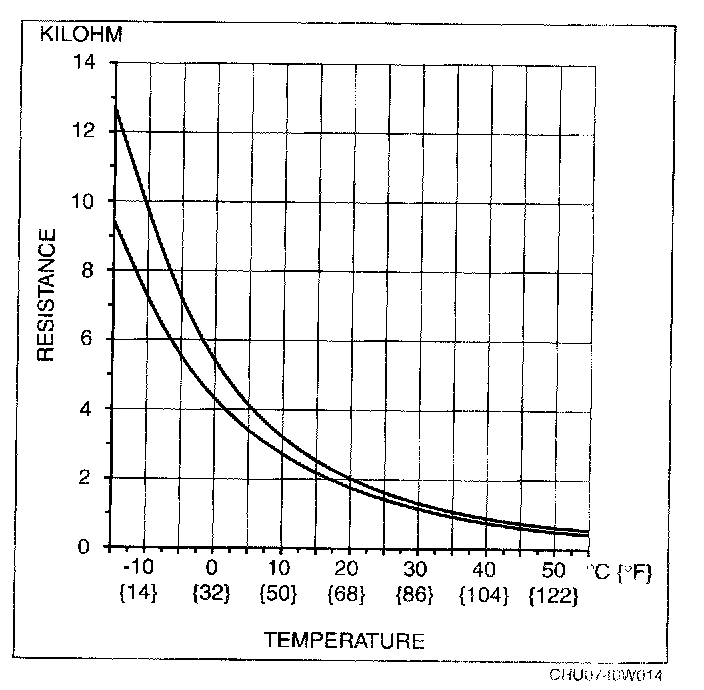 - If the characteristics of the evaporator temperature sensor are not as shown in the graph, replace the evaporator temperature sensor.