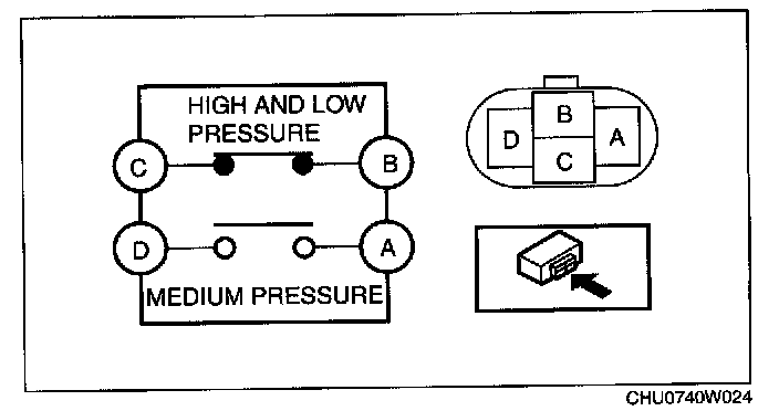 - If the continuity is not normal, replace the refrigerant pressure switch.