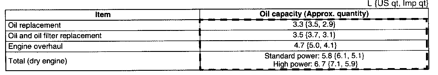 ^ The amount of residual oil in the engine can vary according to the replacement method, oil temperature, etc. Verify the oil level after engine oil replacement.