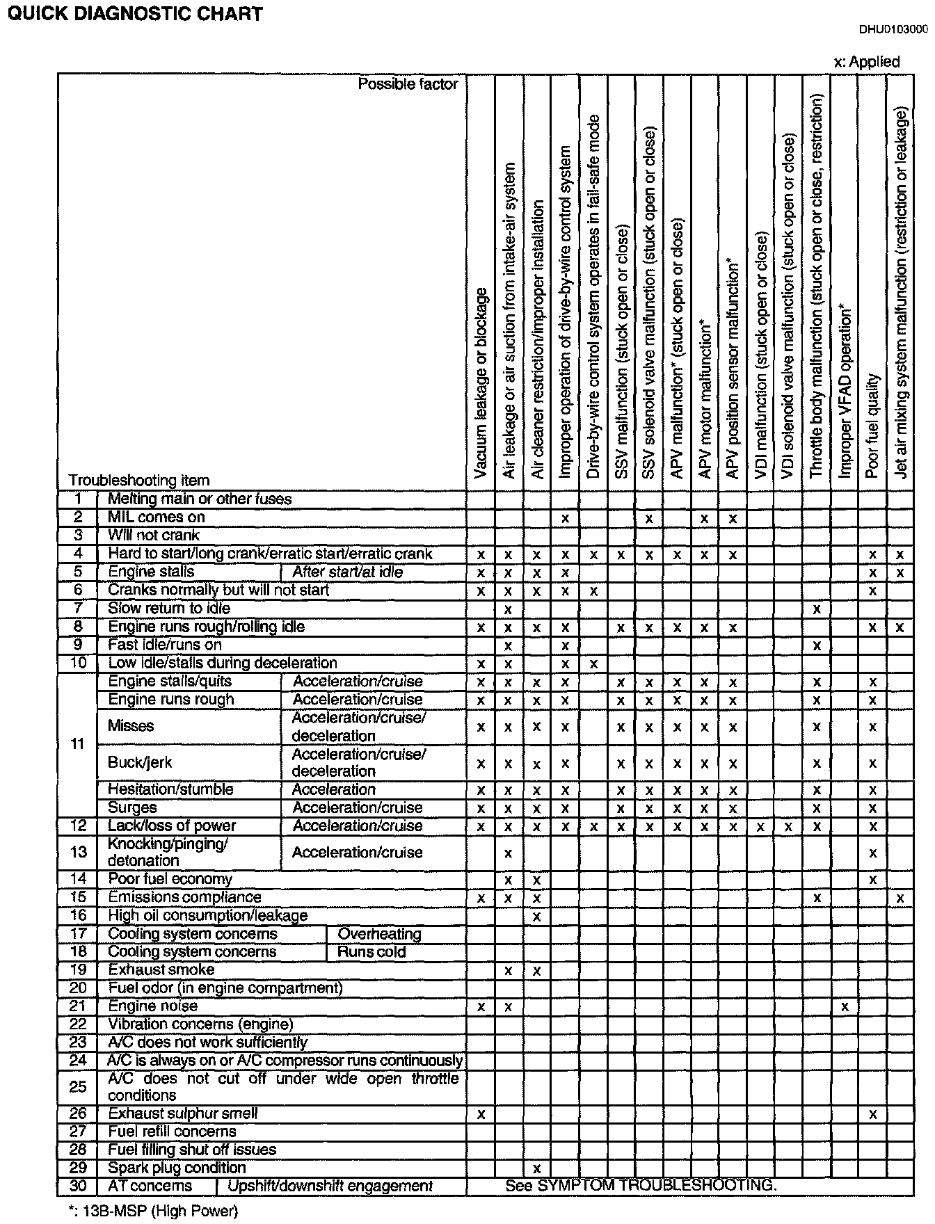 Symptom Quick Diagnostic Chart
