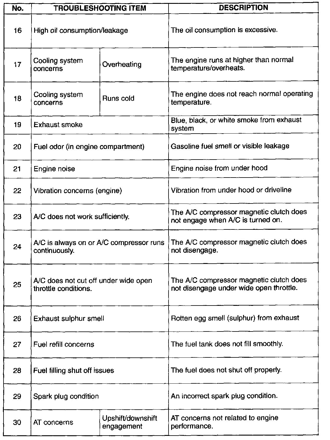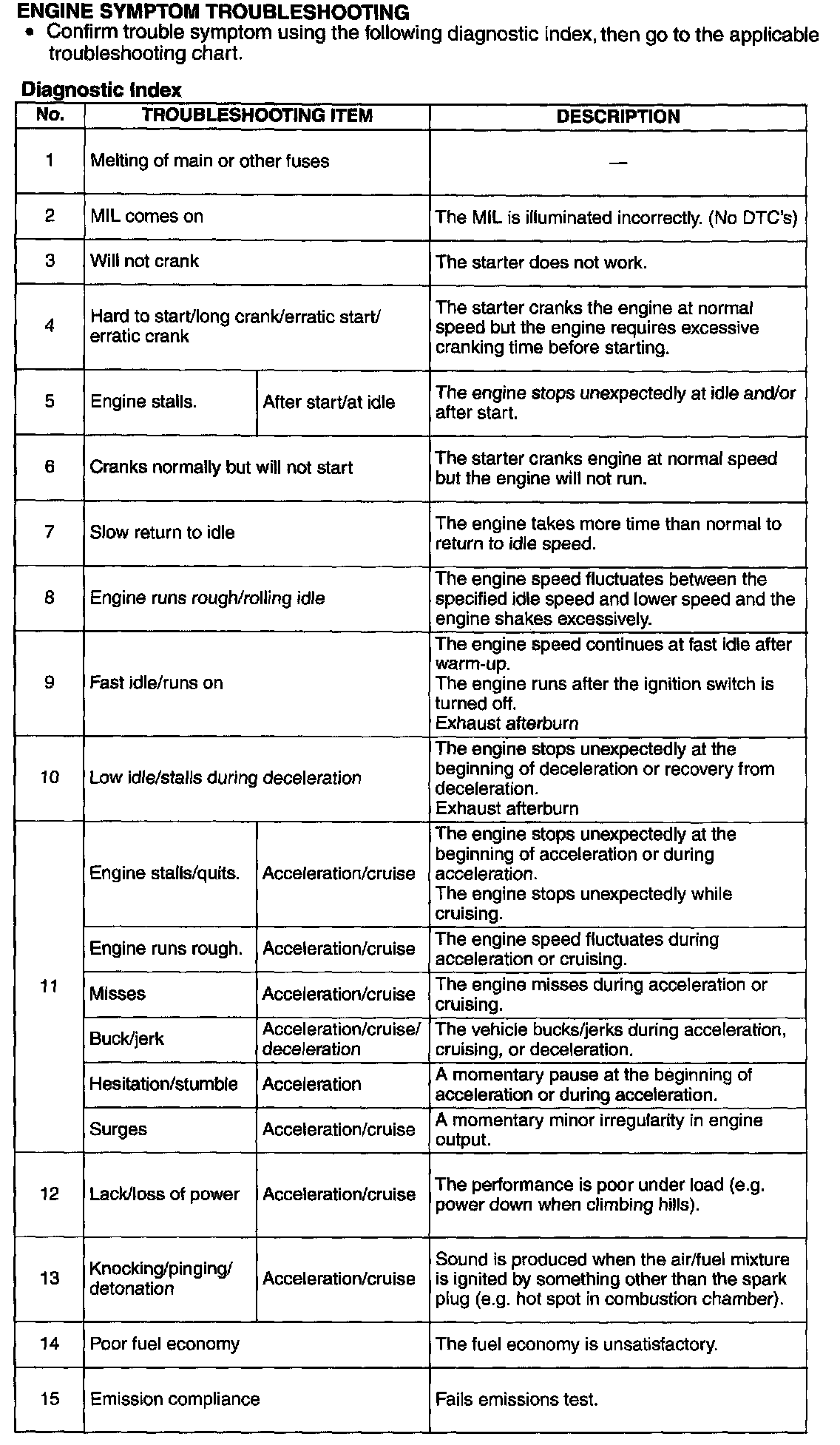 Symptom Troubleshooting Chart - Engine Driveability