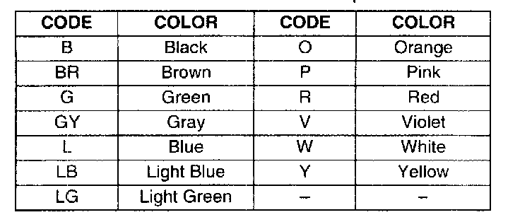 The first letter indicates the base color of the wire and the second the color of the stripe.