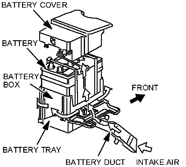 This information supersedes all parts information relating to battery replacement recommendations for RX-8. The RX-8 battery box is designed to duct fresh air around the battery, which aids in cooling to improve battery performance and reliability. The battery box and cover are essential to insulate the battery from high engine compartment temperatures.
