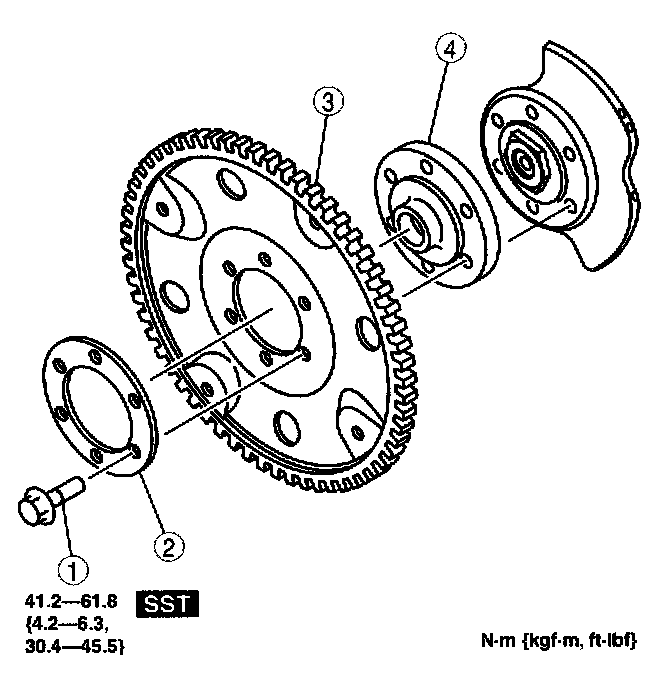 Tightening torque 41.2 - 61.8 Nm (4.2 - 6.3 kgf-cm, 30.4 - 45.5 ft. lbs.)