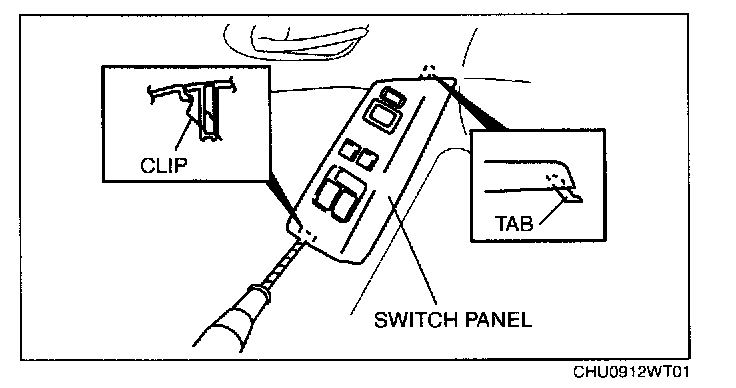3. Remove the switch panel from the front door trim keeping the tab from catching.