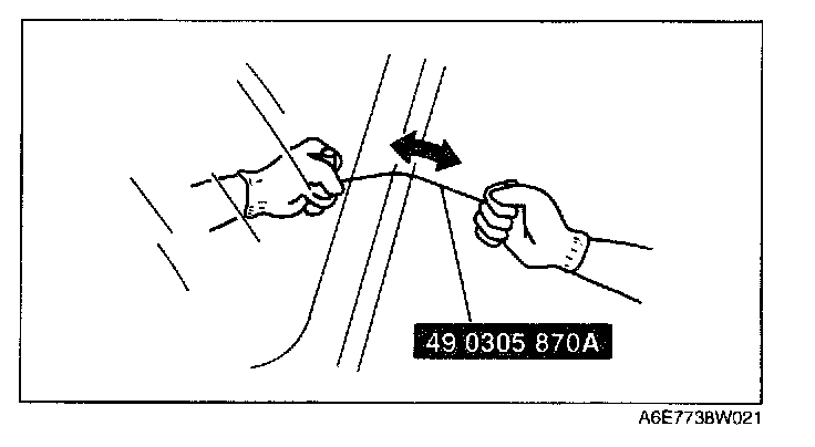 4. Fix one end of the SST (piano wire), and while pulling the other end, cut the sealant around the rear window glass.