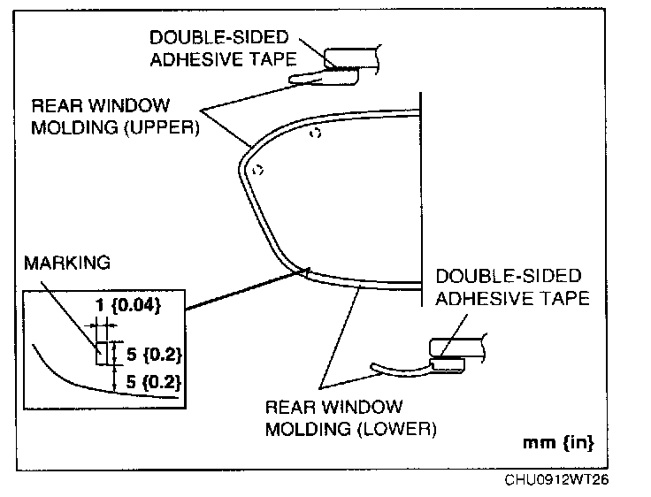 NOTE: Double-sided adhesive tape has been affixed to the new rear window molding.
