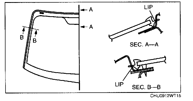 CAUTION: Proper installation of the windshield may be difficult if sealant is cracked or the glass is pushed out by air pressure when a door is opened/closed with all the window glass closed. Leave all the windows open until the windshield is installed completely.