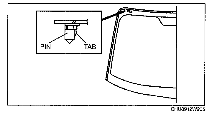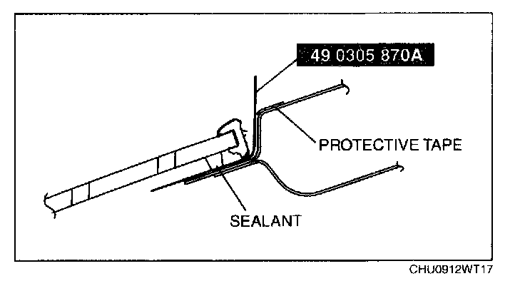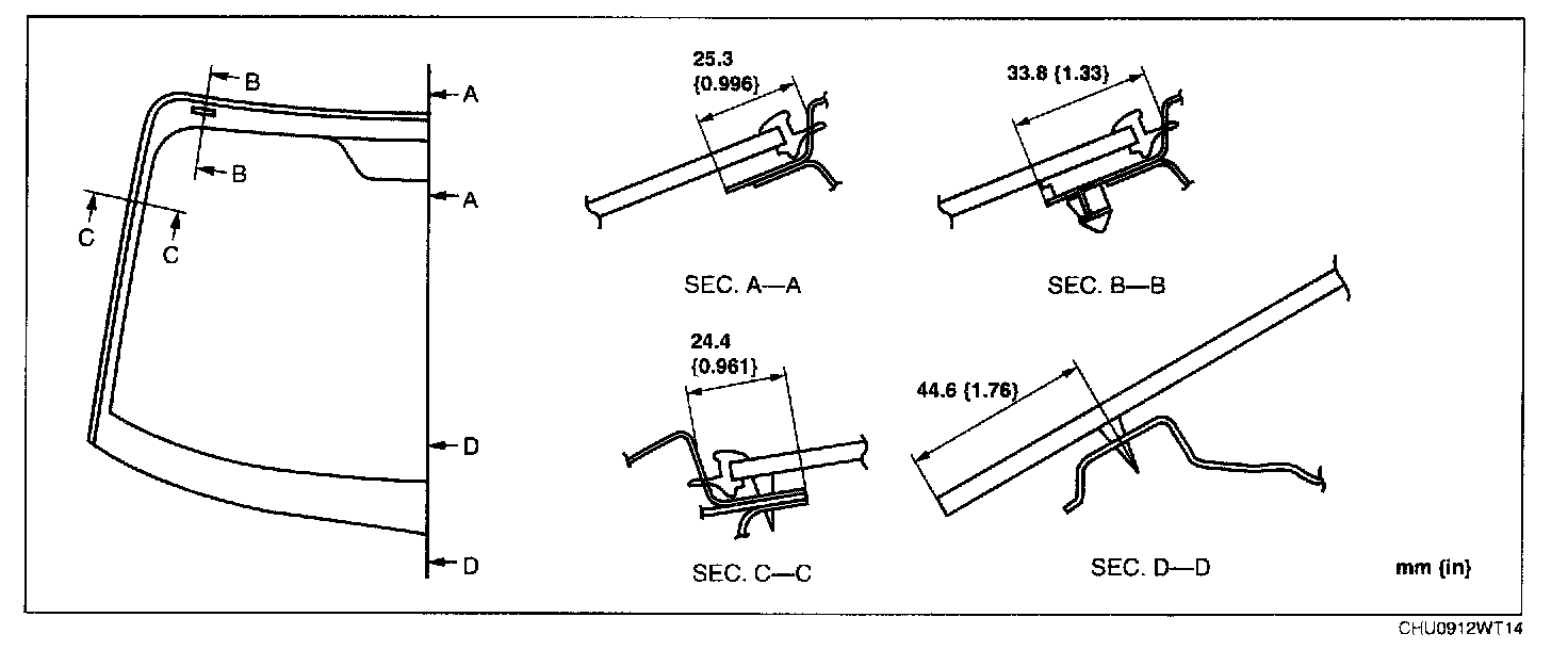 NOTE: Before removing the windshield from the body, mark the position of the windshield by affixing tape to the windshield and body panel.