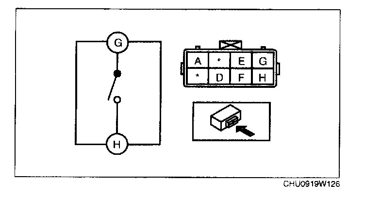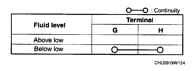 2. Inspect for continuity between the washer fluid-level sensor terminals using an ohmmeter.