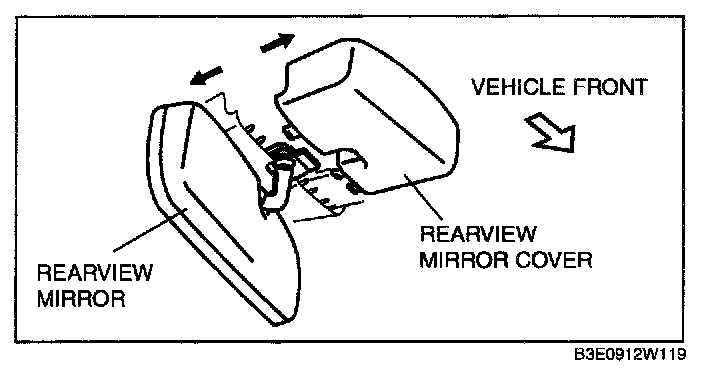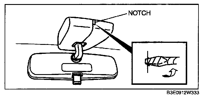 REARVIEW MIRROR REMOVAL/INSTALLATION1. Insert a tape-wrapped flathead screwdriver into the notch and pry with the screwdriver in the direction shown by the arrow to remove the covers. (Vehicles with auto wiper system)