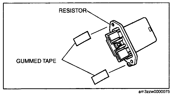 7. Affix the gummed tape to the thread hole area as shown in the figure. (Do not wrap the packing tape around the backside of the resistor.)