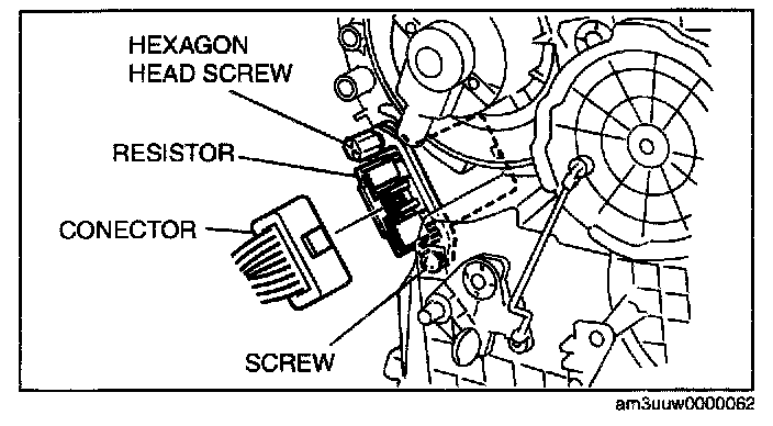 9. Set the resistor to the A/C unit and temporarily tighten the hexagon head screw.